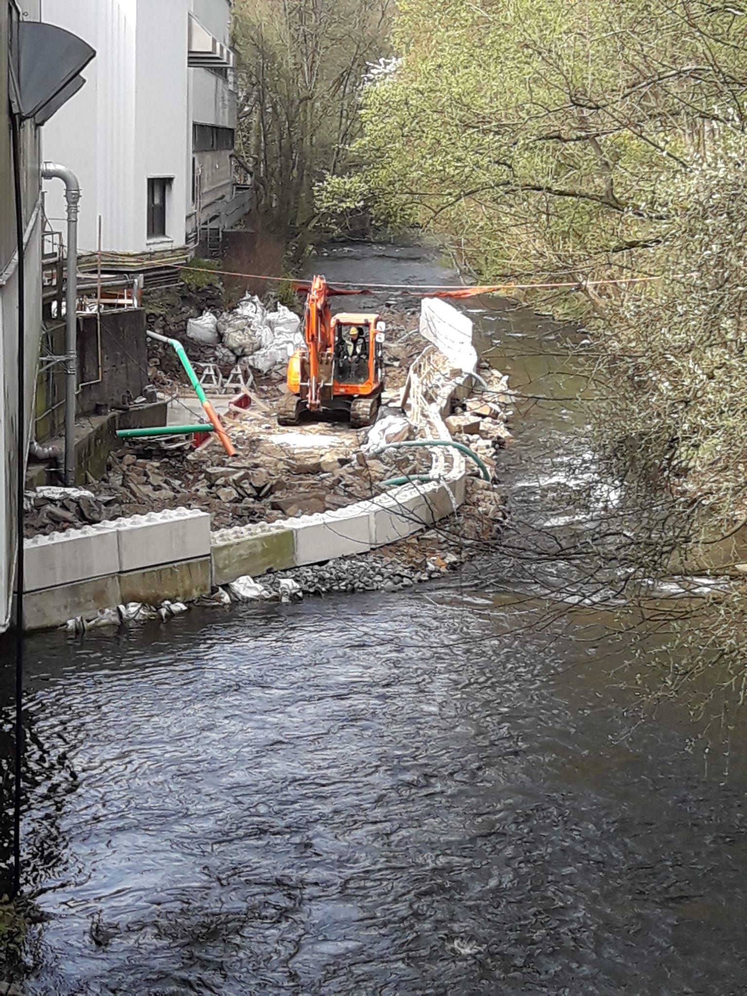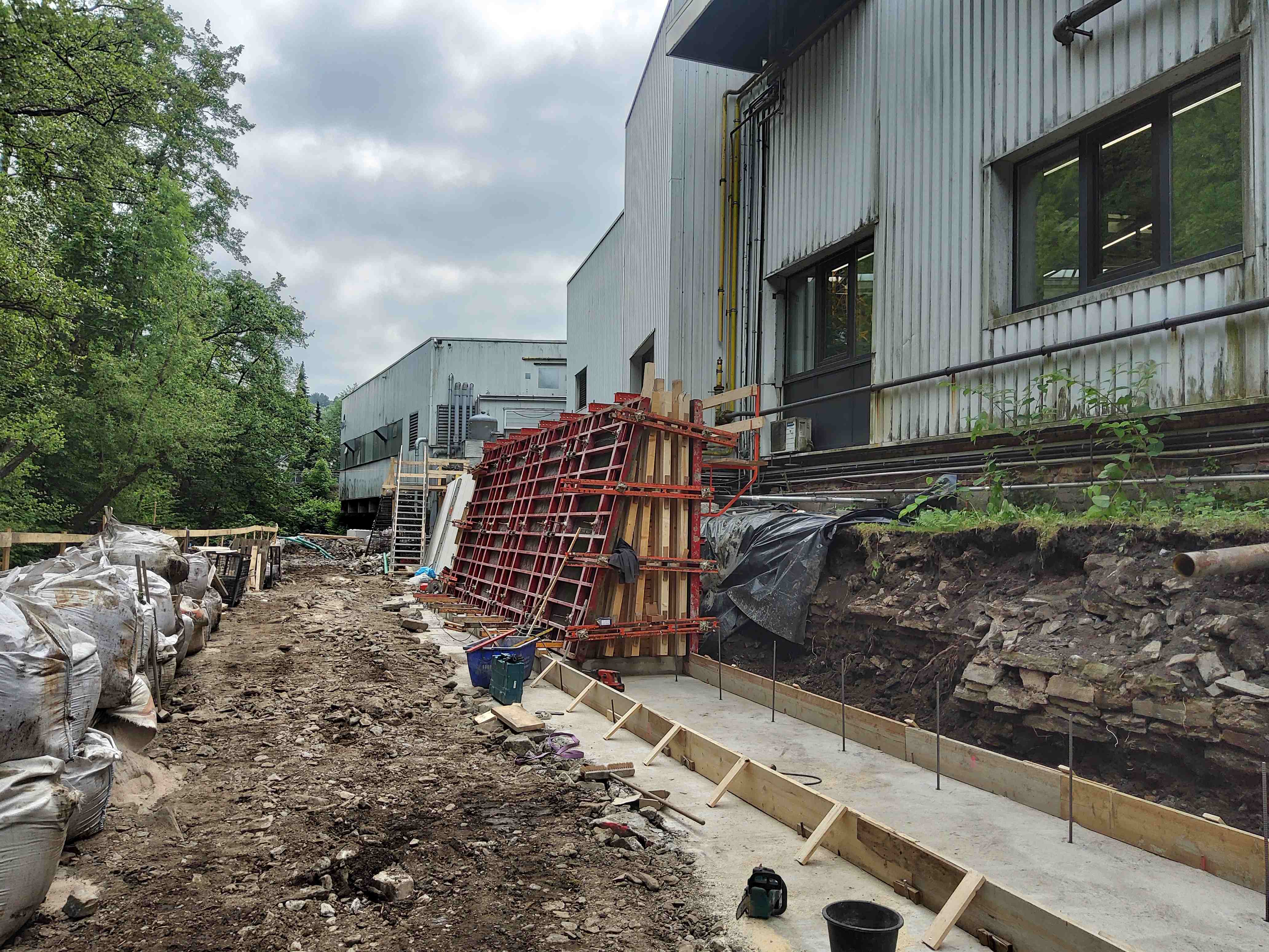 Durch das Hochwasser 2021 wurde die Uferwand in unmittelbarer Nähe einer Produktionshalle stark beschädigt und musste erneuert werden.